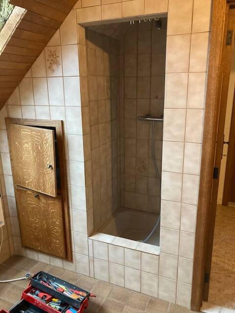 Oude douche die zeer ongemakkelijk instapbaar was met weinig bewegingsruimte